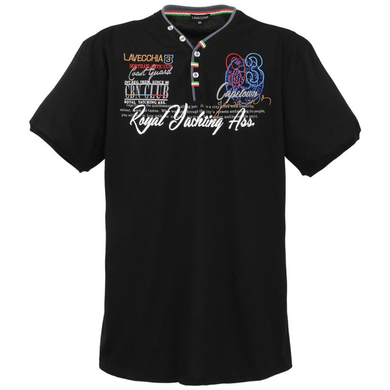 Lavecchia pánské tričko 608 s krátkým rukávem v nadměrných velikostech.  Je vyrobené ze 100% bavlny. Má zapínání na knoflíky a na hrudi je zdobené nášivkami a potisky. Pro správný výběr velikosti sledujte tabulku rozměrů.