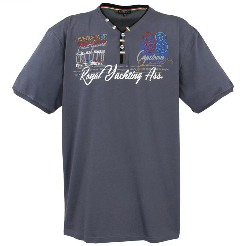 Lavecchia pánské tričko 608 s krátkým rukávem v nadměrných velikostech.  Je vyrobené ze 100% bavlny. Má zapínání na knoflíky a na hrudi je zdobené nášivkami a potisky. Pro správný výběr velikosti sledujte tabulku rozměrů.